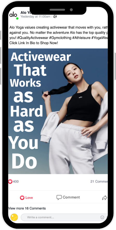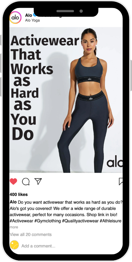 A social media competitive analysis for Alo Yoga, benchmarking the brand against Gymshark, Lululemon, and Fabletics to uncover performance gaps and growth opportunities. Our research led to the campaign "Activewear That Works As Hard As You Do" a platform-specific strategy built around UGC, keyword-driven content, and SEO to reposition Alo as a performance-driven premium brand.